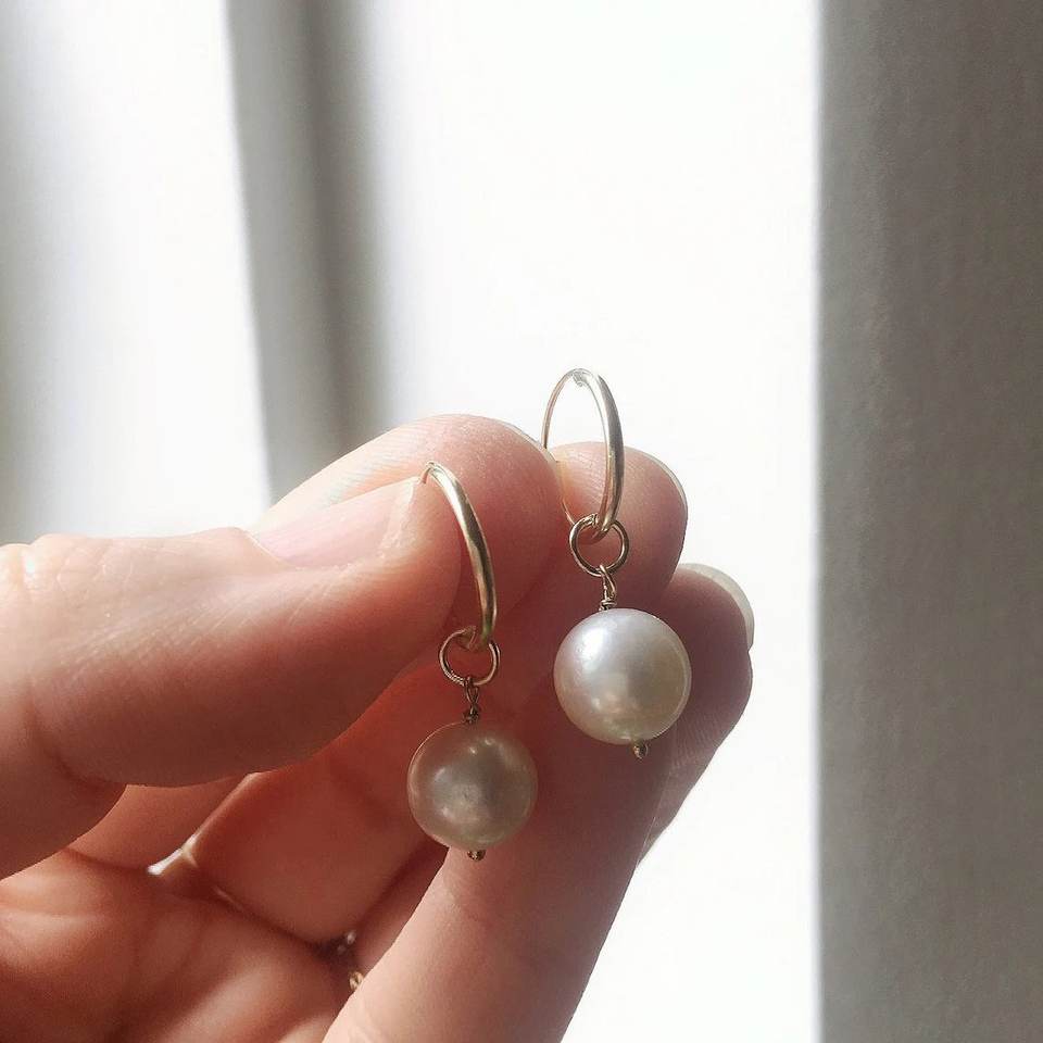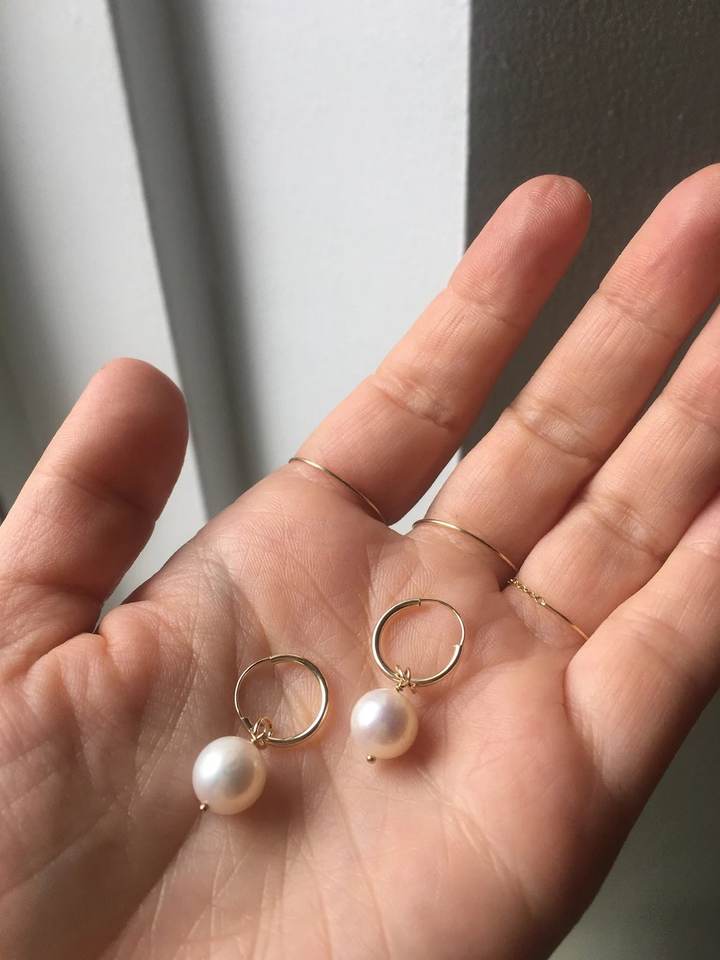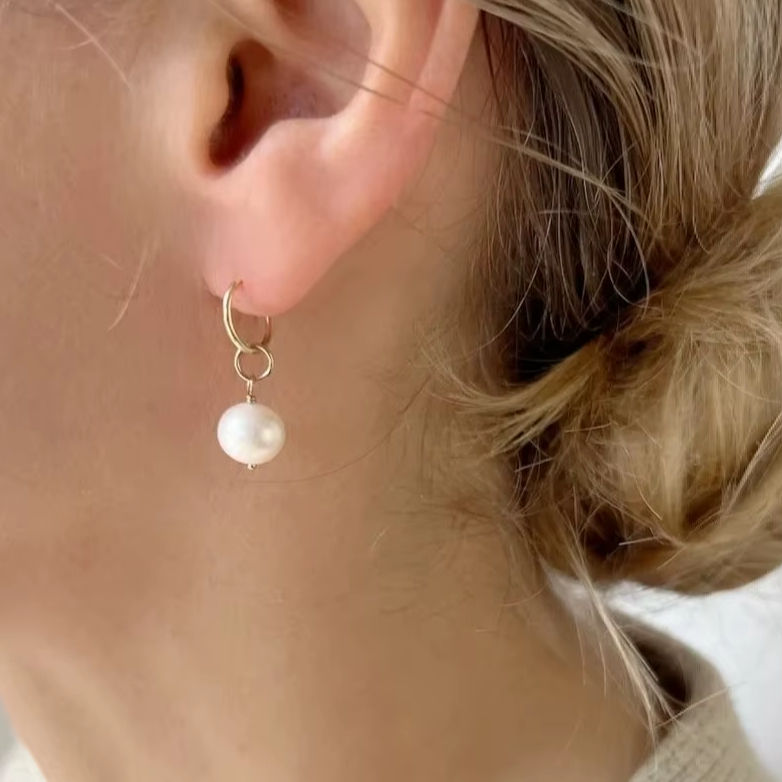 ต่างหูห่วงมุก ทอง 18K ต่างหูห่วงเล็กประณีต ประดับพลอยประจำเดือนมิถุนายน เครื่องประดับหรูหราสำหรับผู้หญิง ของขวัญ