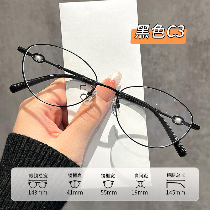 Pearl Pure Titanium Cat Eye Eyeglasses Frame For Women Anti Blue Light Full Frame 58166 Danyang Origin