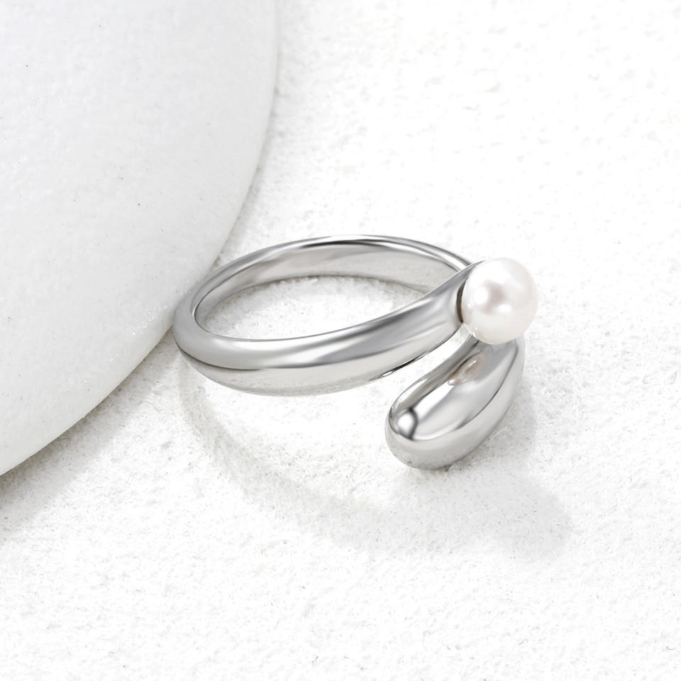 แหวนมุกดีไซน์แบบเปิดประดับมุกเทียมสำหรับผู้หญิงสวมใส่ได้ทุกวัน