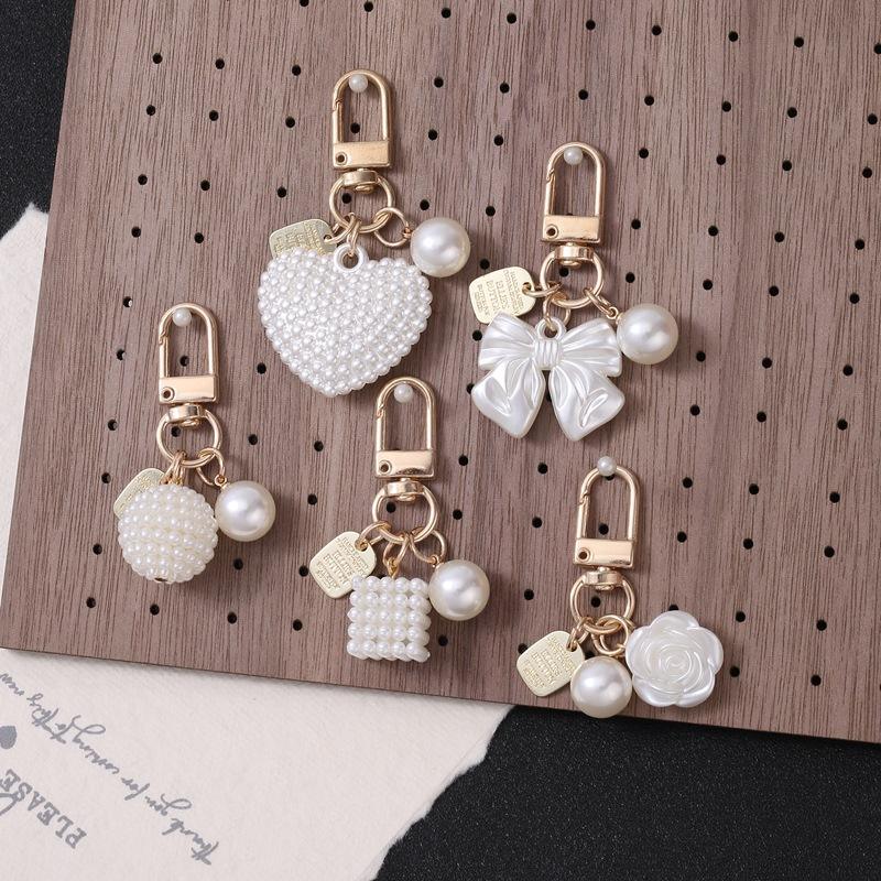 Pearl Rose Car Hanging Decoration Women's Fashion Keychain and Bag Pendant Small Resin Round Square Pendant