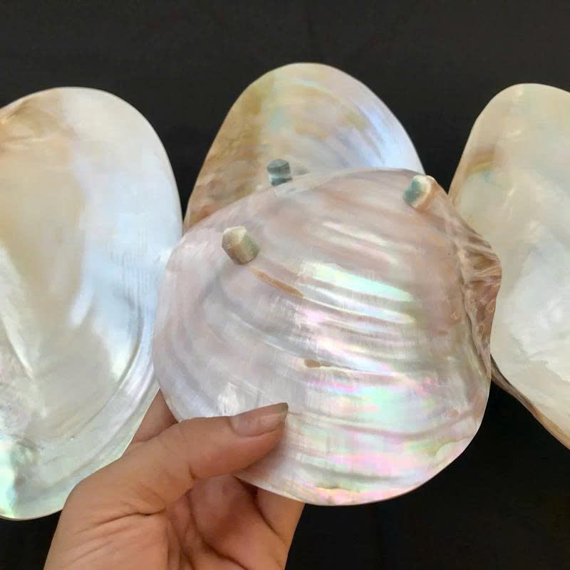 จานเปลือกหอยมุกที่เป็นเอกลักษณ์ของเปลือกหอยมุกจากเวียดนามสำหรับตกแต่งงานแต่งงานและของหวานผลไม้ที่มีสไตล์