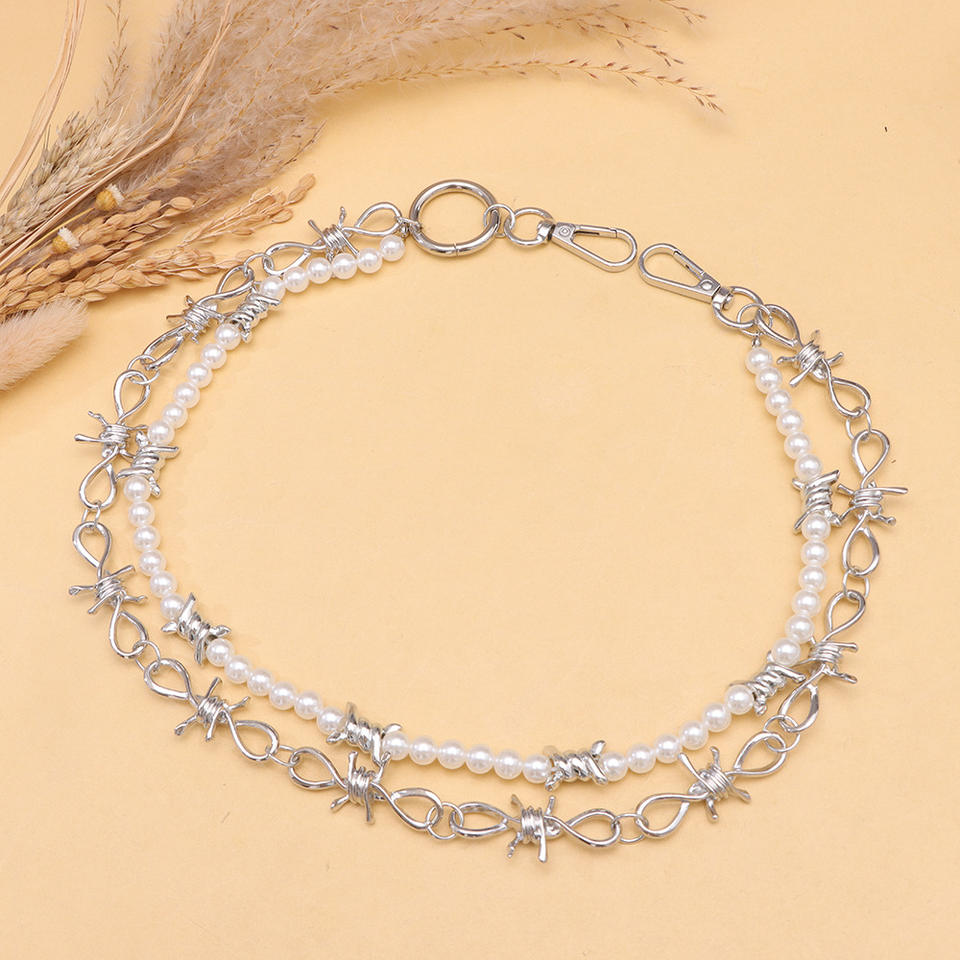 Double-layered pearl spiky trouser chain