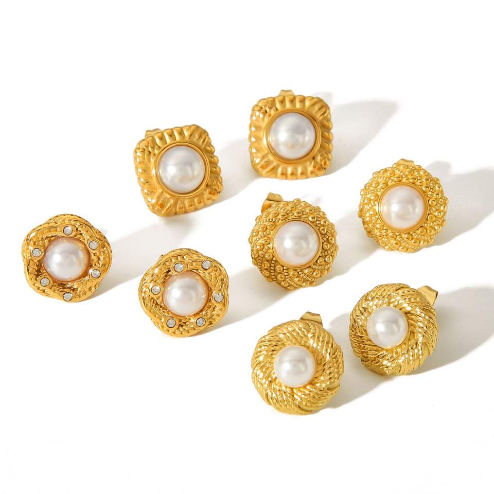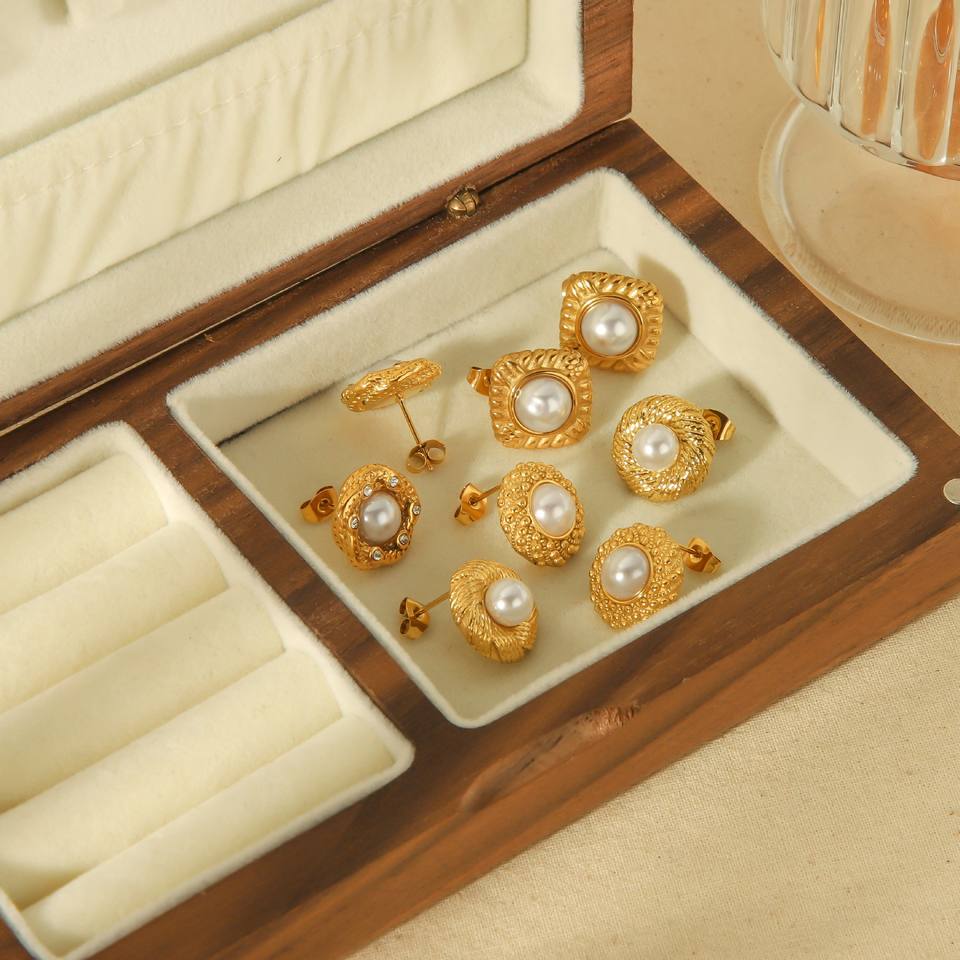 ต่างหูมุกทรงเรขาคณิต ดีไซน์กรอบไทเทเนียมสตีล เหมาะสำหรับใส่ทุกวัน เครื่องประดับแฟชั่นสำหรับผู้หญิง
