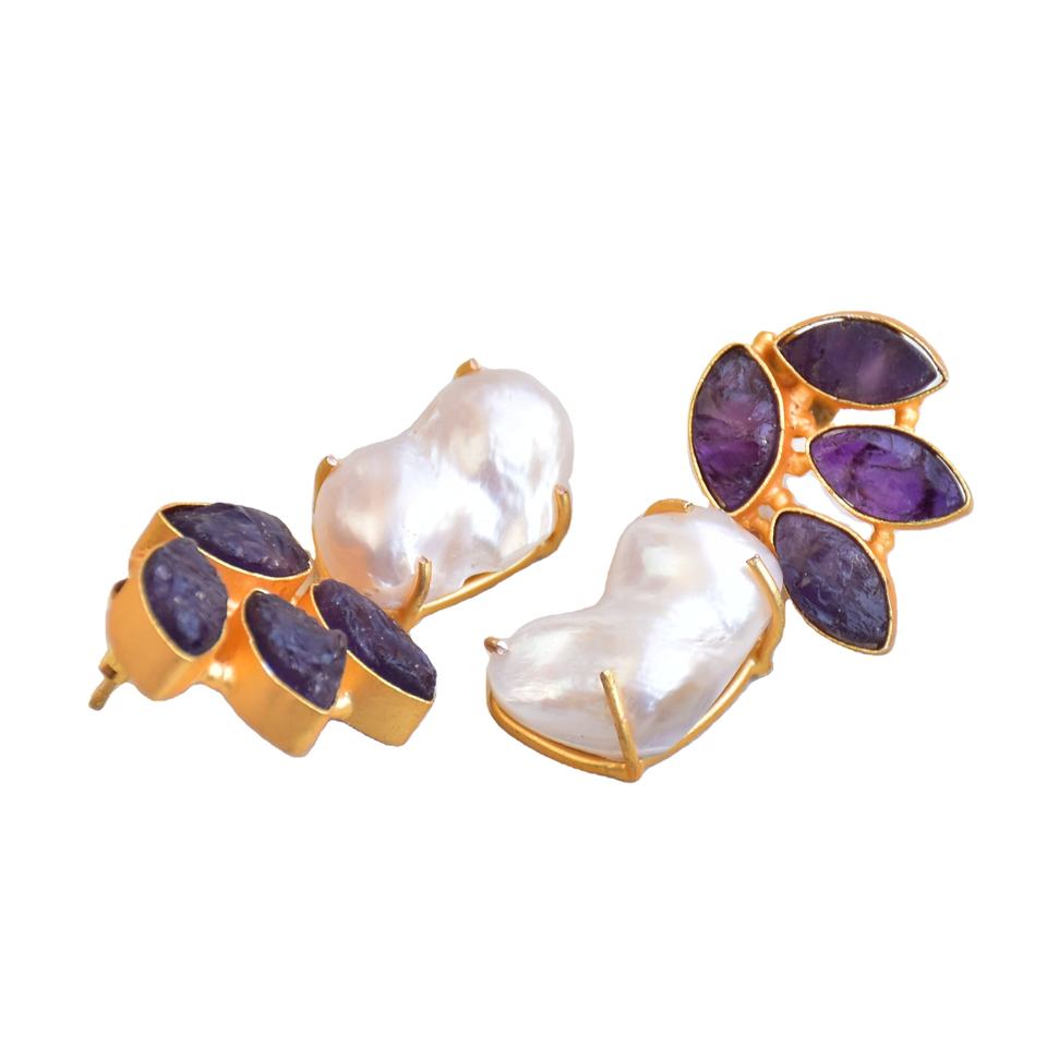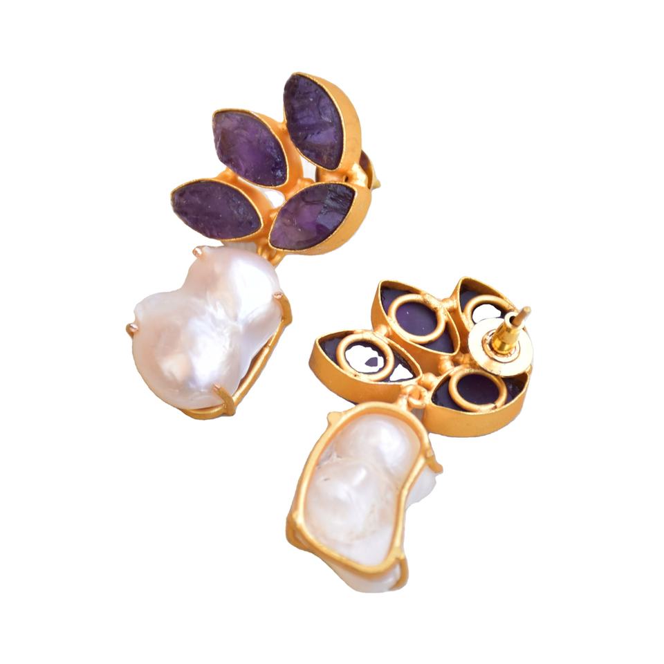 Product Name:Amethyst with Pearl Drop Gold earrings