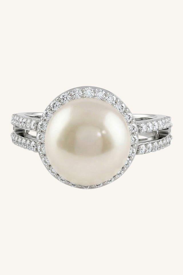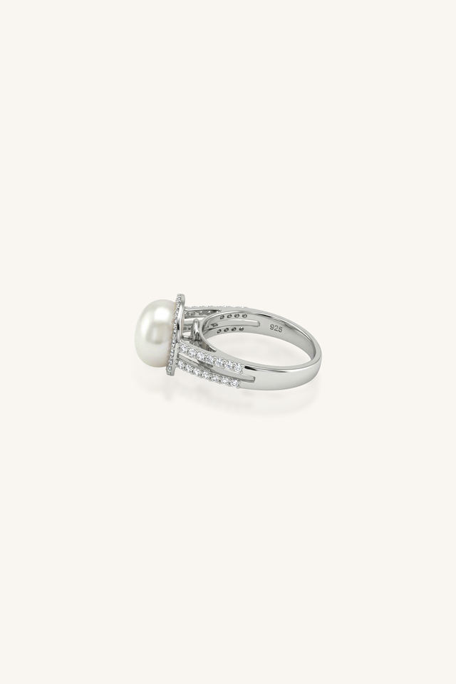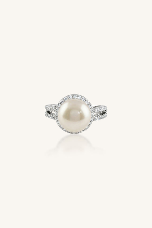 แหวนมุกและเพชร CZ เงินแท้ 92.5 รุ่น KLSR-11896