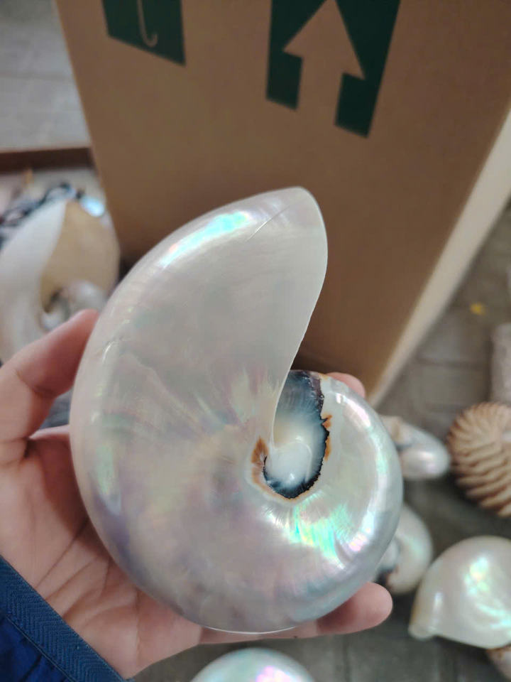 เปลือกหอยมุกแบบ Nautilus ขัดเงาเปลือกหอยที่สมบูรณ์แบบสำหรับตกแต่งชายฝั่งการจัดแสดงงานแต่งงาน