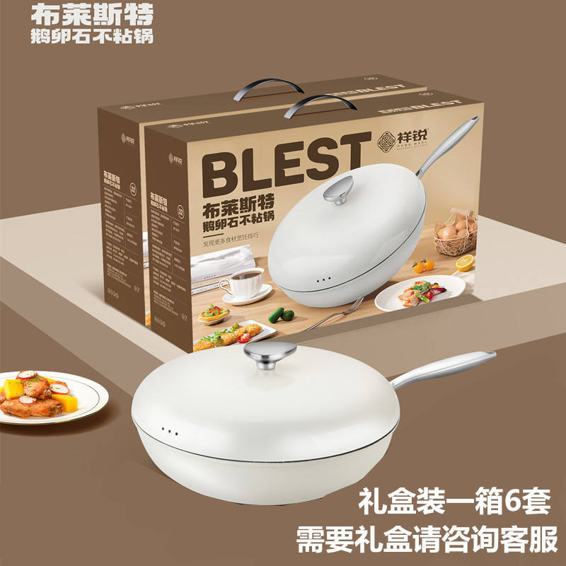 กระทะเคลือบกันติด Pebble พร้อมฝาปิด ขนาด 32 ซม. ก้นแบนเคลือบเอนาเมล สำหรับทำอาหารเพื่อสุขภาพ ใช้ในครัวเรือน