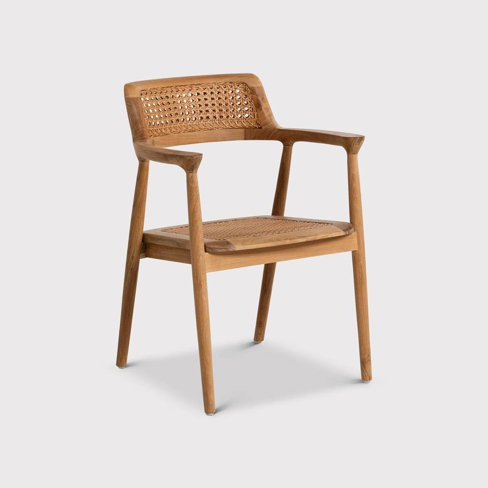 เก้าอี้ทานข้าวทรงโมเดิร์น Pedro ทำจากไม้สักแท้ ที่นั่งหวายถัก พนักพิงปรับระดับความสูงได้ สำหรับเฟอร์นิเจอร์บ้าน ใช้ได้ทั้งภายในและภายนอกอาคาร