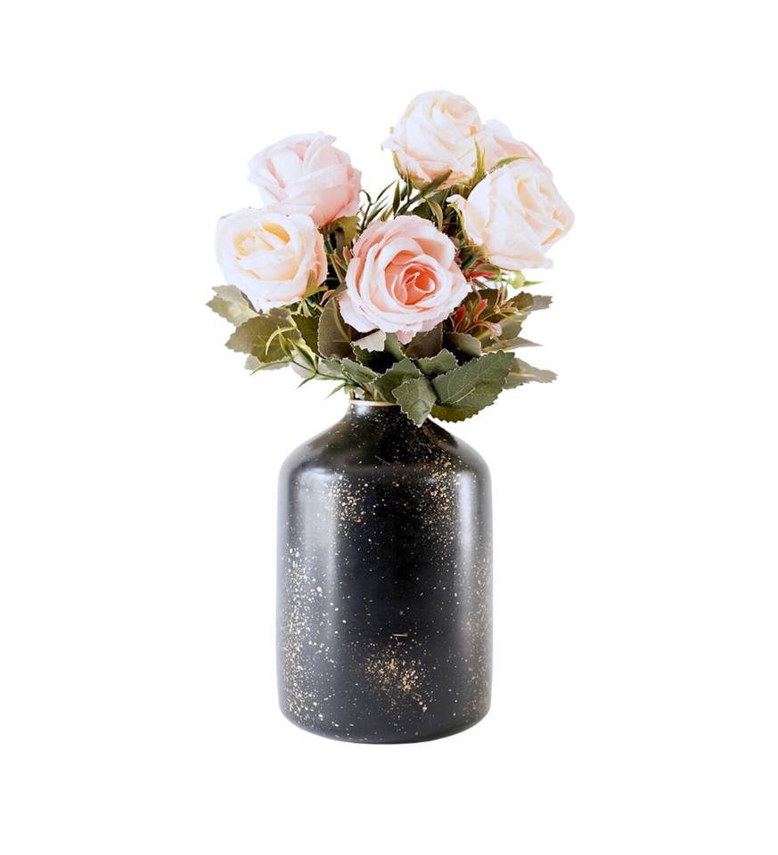 แจกันดอกไม้เหล็กสีดำสไตล์โมเดิร์นขนาดเล็ก ของตกแต่งโต๊ะแบบมินิมอลสำหรับห้องนั่งเล่น ห้องนอน และโต๊ะทำงาน