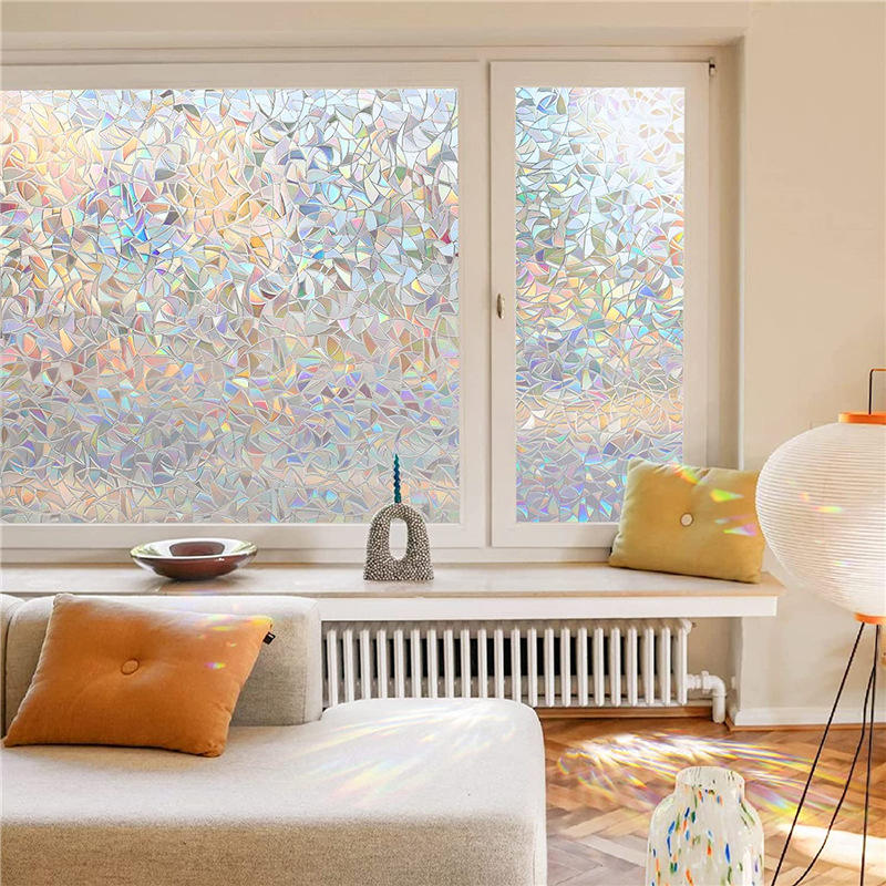 Peel and Stick Wallpapers Sand Glass Film Application 3D Static Cling Holographic Window Film for Window Decorative