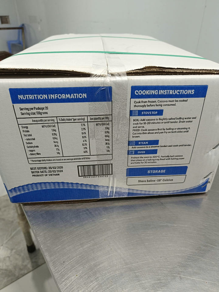 รากมันสำปะหลังแช่แข็งปอกเปลือกสำหรับอุตสาหกรรมอาหารเกรดส่งออกและ OEM จากเวียดนาม