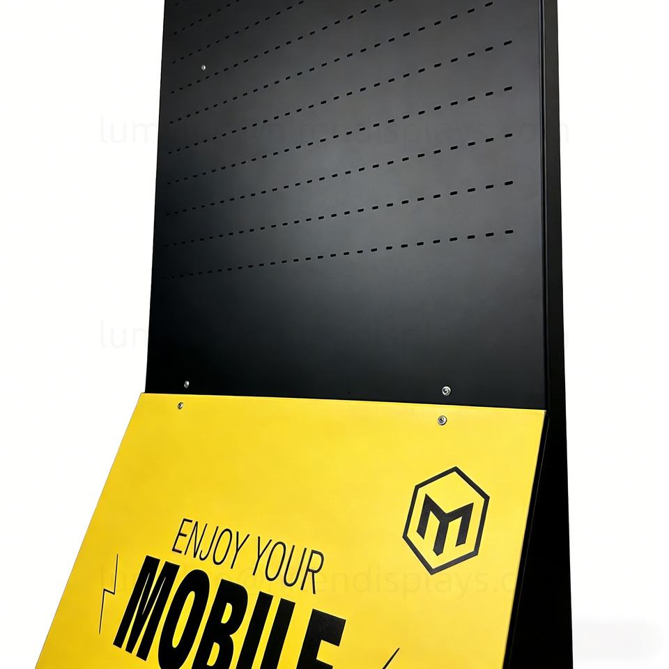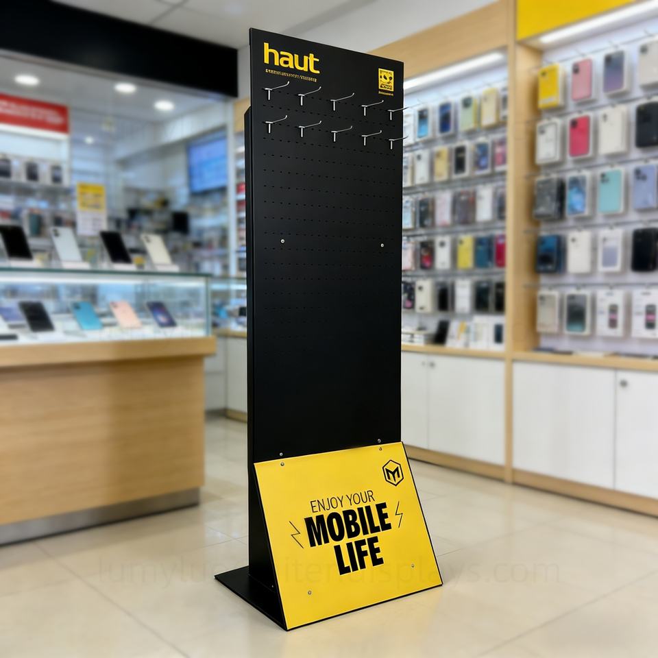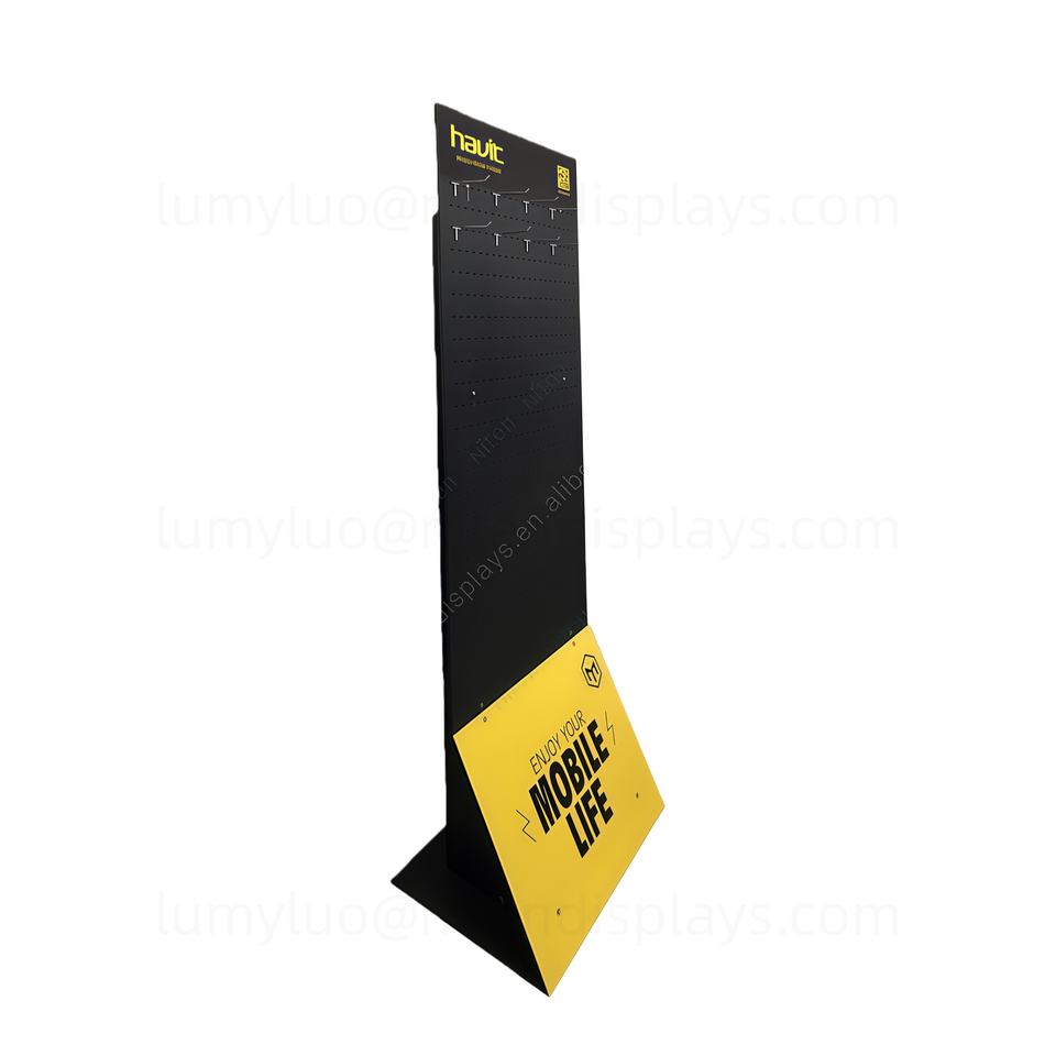 ชั้นวางสินค้าแบบติดผนังพร้อมตะขอสำหรับอุปกรณ์เสริมโทรศัพท์มือถือ ชั้นวางโลหะแบบตะแกรงสำหรับผลิตภัณฑ์ 3C ที่ชาร์จ และสายเคเบิล