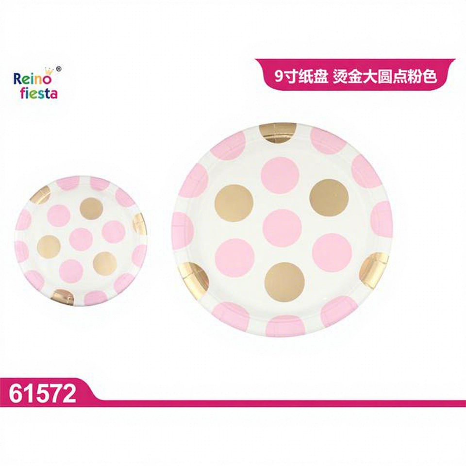 ชุดจานกระดาษลายจุดสีชมพูขนาด 9 นิ้ว ยี่ห้อเป่ยหยง แพ็ค 10 ใบ ชุดภาชนะใช้แล้วทิ้งจากประเทศจีน สำหรับงานวันขอบคุณพระเจ้า งานรอมฎอน และงานอีเว้นท์ต่างๆ