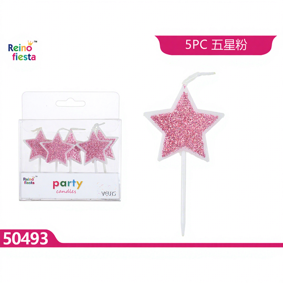 เทียนวันเกิดลายดาวสีชมพู 5 ชิ้น รุ่น Peiyong 50493 ประดับกลิตเตอร์ สำหรับงานอีสเตอร์ ปีใหม่ งานเลี้ยงฉลองต่างๆ ตกแต่งเค้ก