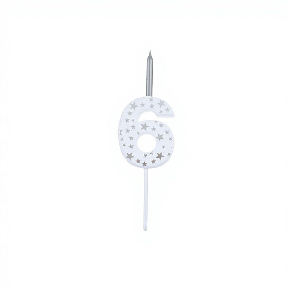 เทียนตกแต่งเค้กวันเกิด เพ่ยหยง ซิลเวอร์สตาร์ หมายเลข 6 รุ่น 50403 สำหรับงานปาร์ตี้และงานเฉลิมฉลอง