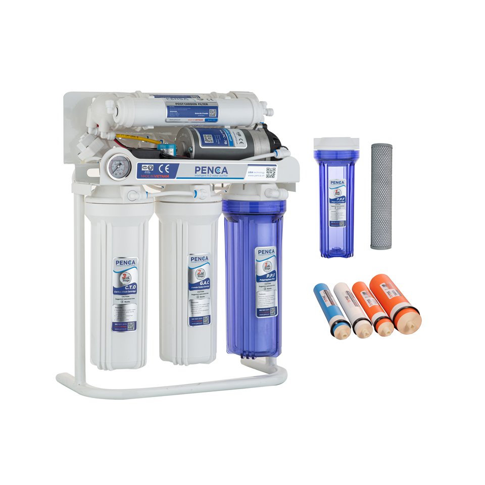 Penca ตัวกรองน้ำเมมเบรนเคาน์เตอร์5ขั้นตอน RO ปั๊มน้ำออสโมซิสผันน้ำบริสุทธิ์สำหรับใช้ในครัวเรือน