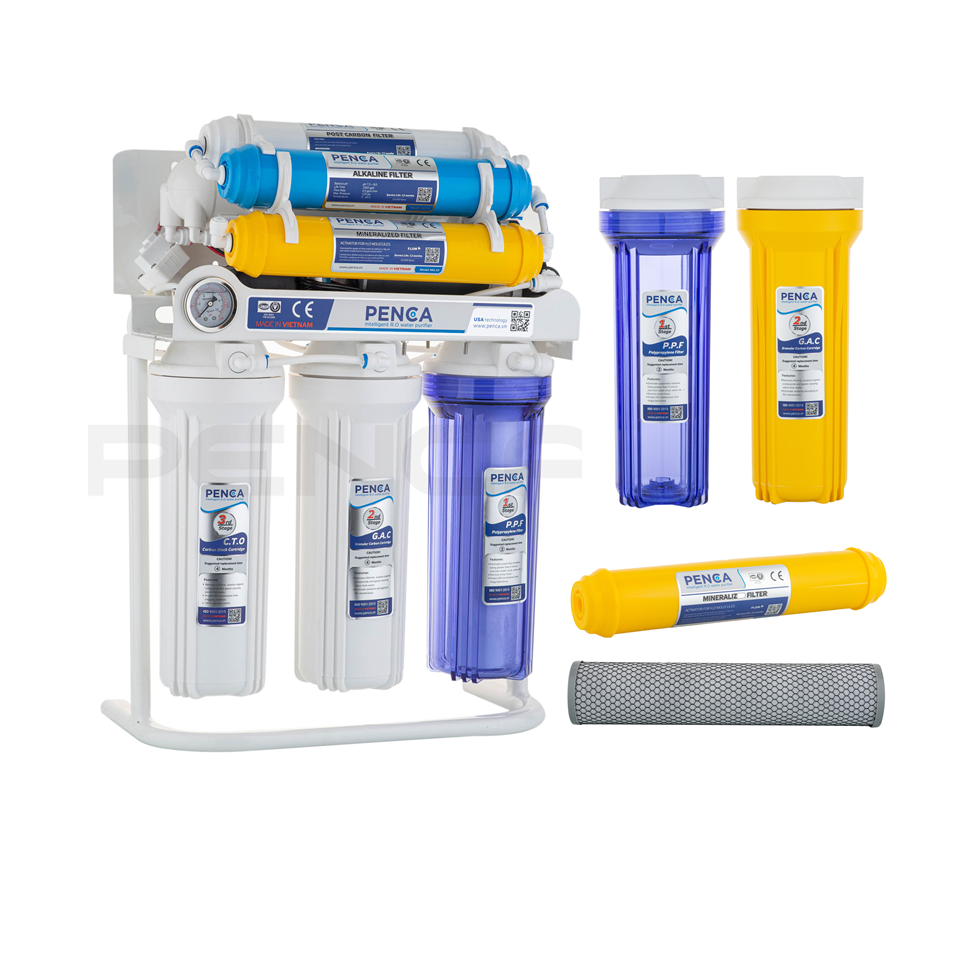 Penca ระบบเครื่องกรองน้ำระบบออสโมซิสผันน้ำอัลคาไลน์แบบไม่มีถัง7ระดับสำหรับใช้ในโรงแรมและครัวเรือน