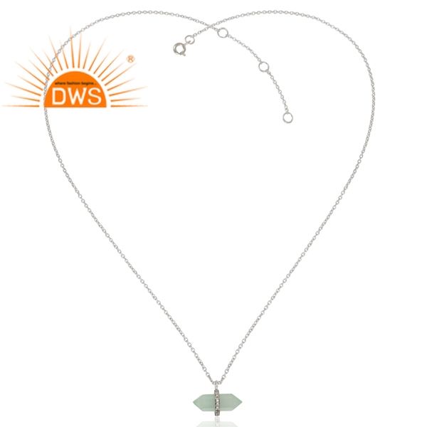 จี้พลอยอะควาคาลเซโดนีทรงเหลี่ยม ดีไซน์เนอร์เครื่องประดับขายส่ง ชุบโรเดียมขาว เงินแท้ 925 สร้อยคอ คอลเลคชั่นคลาสสิก