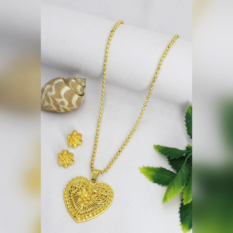 จี้ทองชุบโลหะผสมทองเหลือง ดีไซน์เนอร์ พร้อมต่างหูแบบโซ่ ชุดจี้ทันสมัย สไตล์ดั้งเดิม สำหรับส่งออก เครื่องประดับจี้ดีไซน์เนอร์