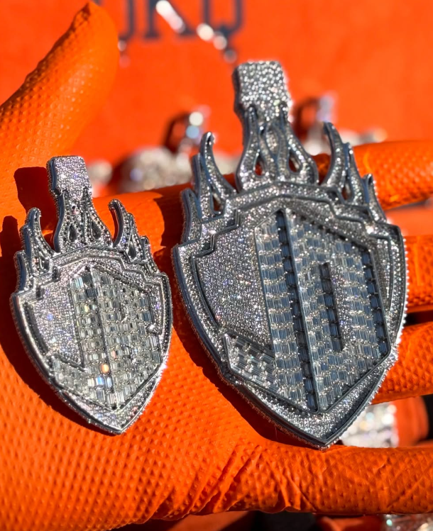 จี้มงกุฎทรงโล่ประดับเพชรโมอิสซาไนต์รูปทรงเพชร ดีไซน์หรูหรา สไตล์ฮิปฮอป ทำจากเงิน