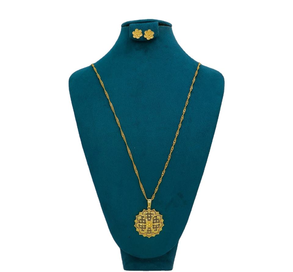 ชุดเครื่องประดับจี้สร้อยคอเจ้าสาวแบบซาอุดิอาระเบียสำหรับผู้หญิงสร้อยคอประดับอัญมณีดูไบชุบทอง