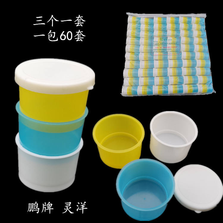 ถ้วยยาพลาสติกเพ็งไป๋ หลิงหยาง 3 สี พร้อมฝาปิด กล่องเก็บยา 60 ชุด