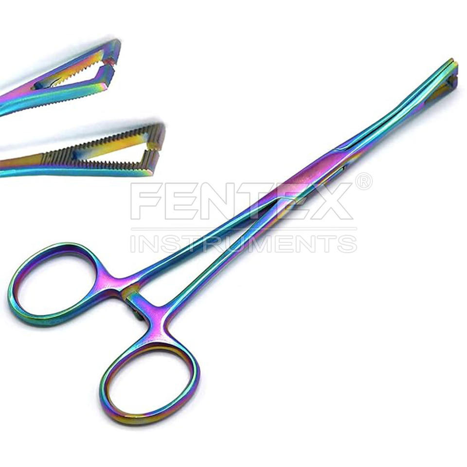 ปากคีบเพนนิงตัน 6.25 นิ้ว แบบมีร่อง สำหรับเจาะร่างกาย เครื่องมือผ่าตัดสแตนเลสสตีลหลายสีไทเทเนียมรุ้งโดย Fentex Surgical Instruments