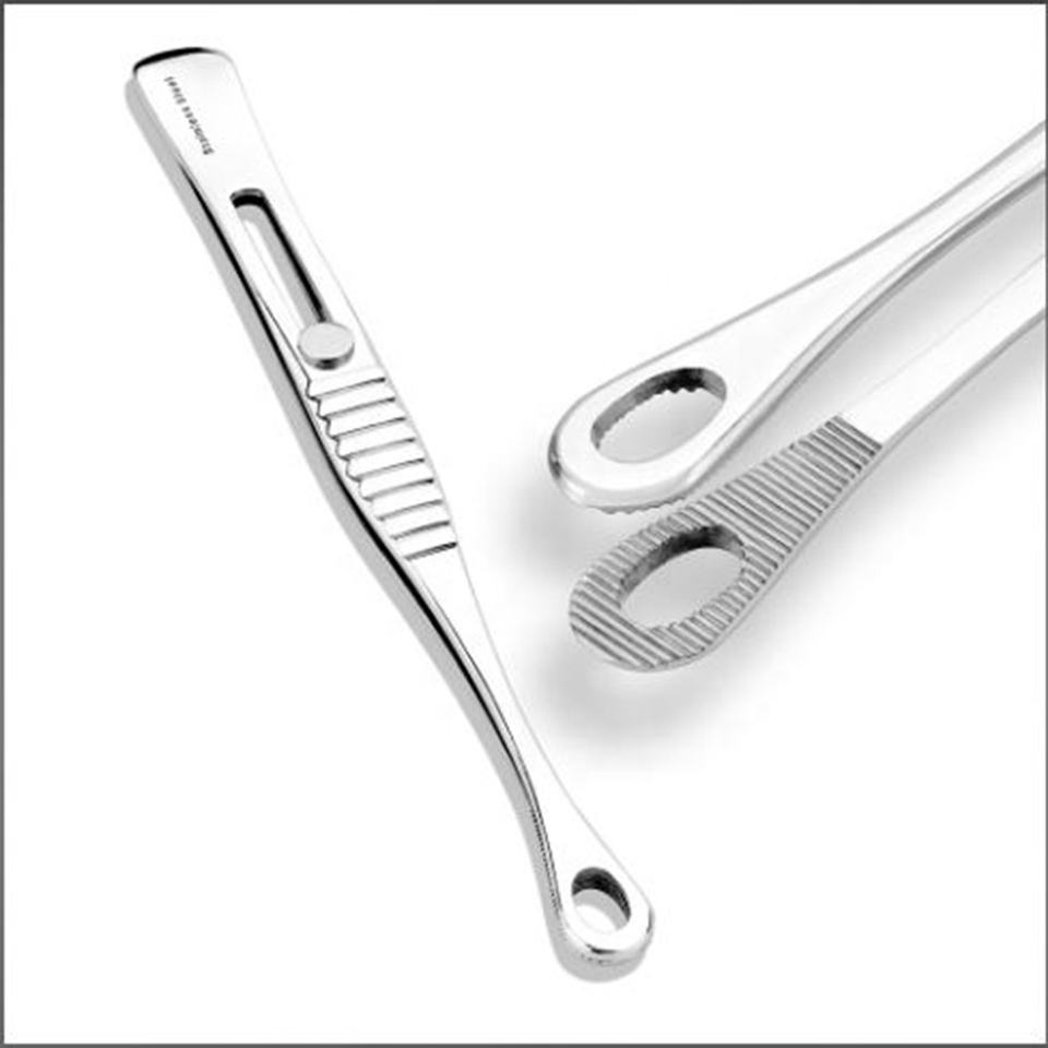 แหนบสแตนเลสทรงสามเหลี่ยมแบบมีร่องยี่ห้อเพนนิงตัน พร้อมตัวล็อคแบบเลื่อนและหัวรูปไข่ขนาดเล็ก สำหรับการเจาะร่างกายและการใช้งานในสตูดิโอสัก