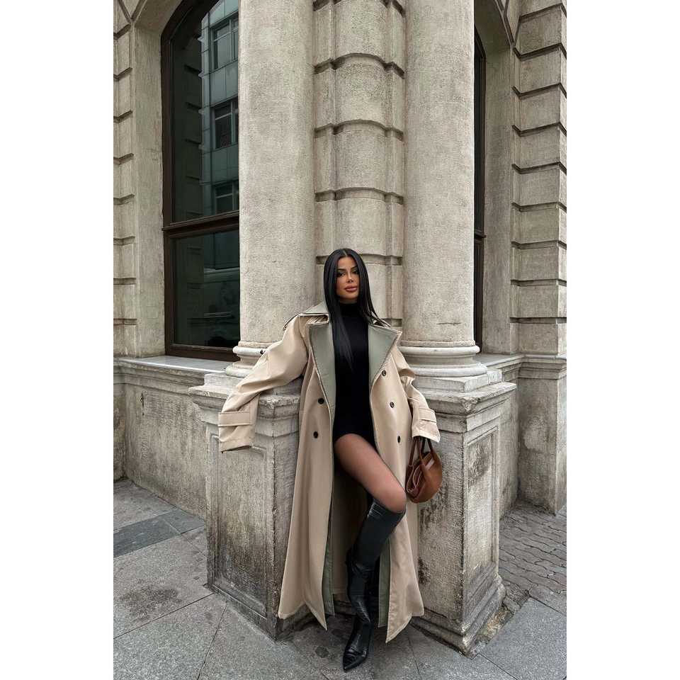 เสื้อโค้ทเทรนช์คอปกสองสีสำหรับผู้หญิง ยี่ห้อเพนนี เลน ผ้าขนสัตว์สำหรับฤดูหนาวและฤดูใบไม้ร่วง ซับในผ้าแคชเมียร์ ตกแต่งด้วยกระดุม บุด้วยผ้าฝ้าย/ผ้าขนสัตว์