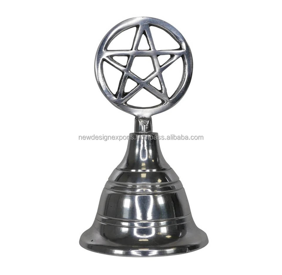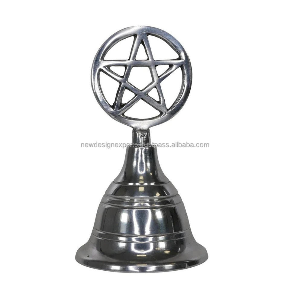 ระฆังแท่นบูชารูปดาวห้าแฉก ระฆังไม้สำหรับพิธีกรรมทางศาสนา พร้อมด้ามจับรูปดาวห้าแฉก ชุบเงินบนพื้นผิวทองเหลือง