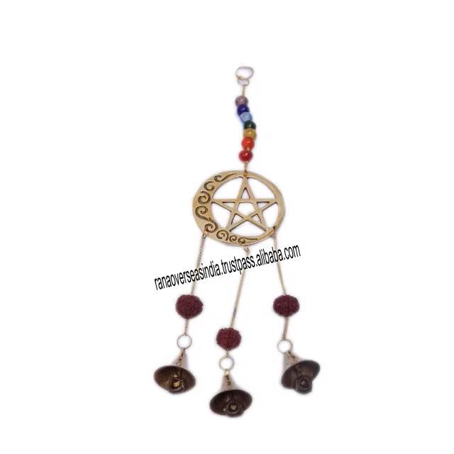 ที่เป่าลมทองเหลืองรูปดาวห้าแฉกและพระจันทร์เสี้ยวพร้อมลูกปัดสำหรับตกแต่งหน้าต่าง