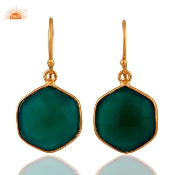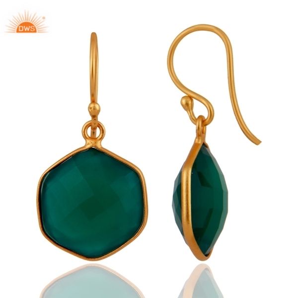 ต่างหูห้อยโอนิกซ์สีเขียวรูปทรงห้าเหลี่ยมต่างหูเงิน925ชุบทอง