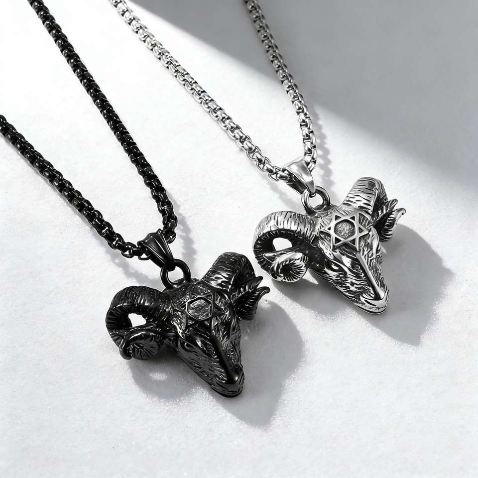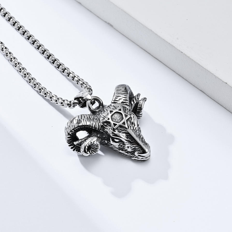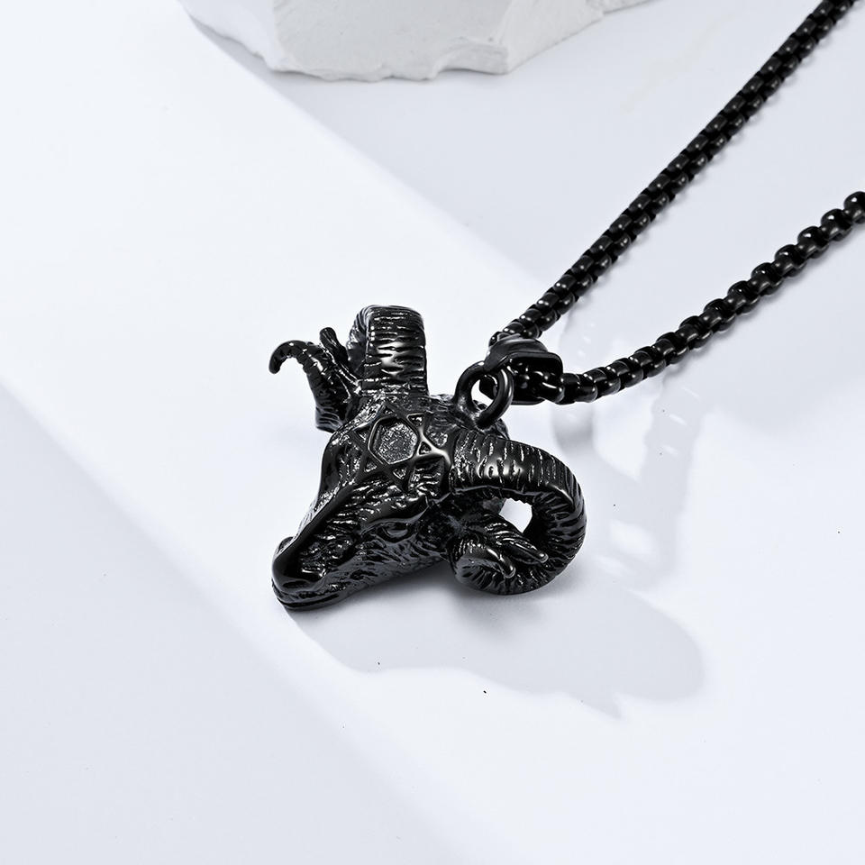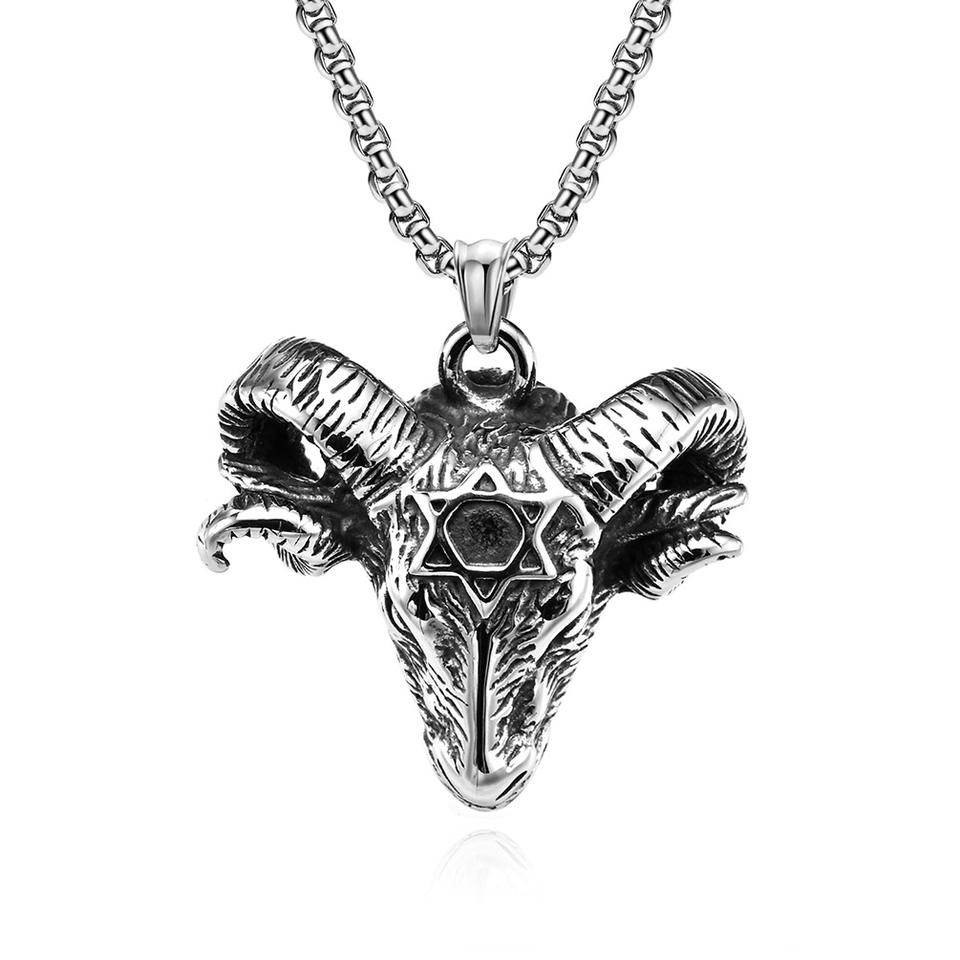 สร้อยคอเหล็กไทเทเนียมรูปแพนทากแกรมลายแพะปีศาจ สไตล์เรโทร จี้รูปหัวแพะซาตาน เครื่องประดับแฟชั่นสำหรับทุกเพศ