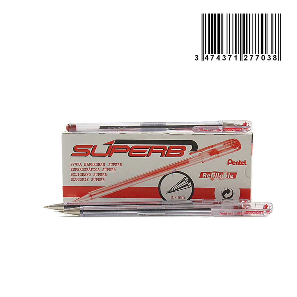 Pentel ปากกาลูกลื่นสีแดง12ชิ้นเครื่องเขียน3ชิ้น