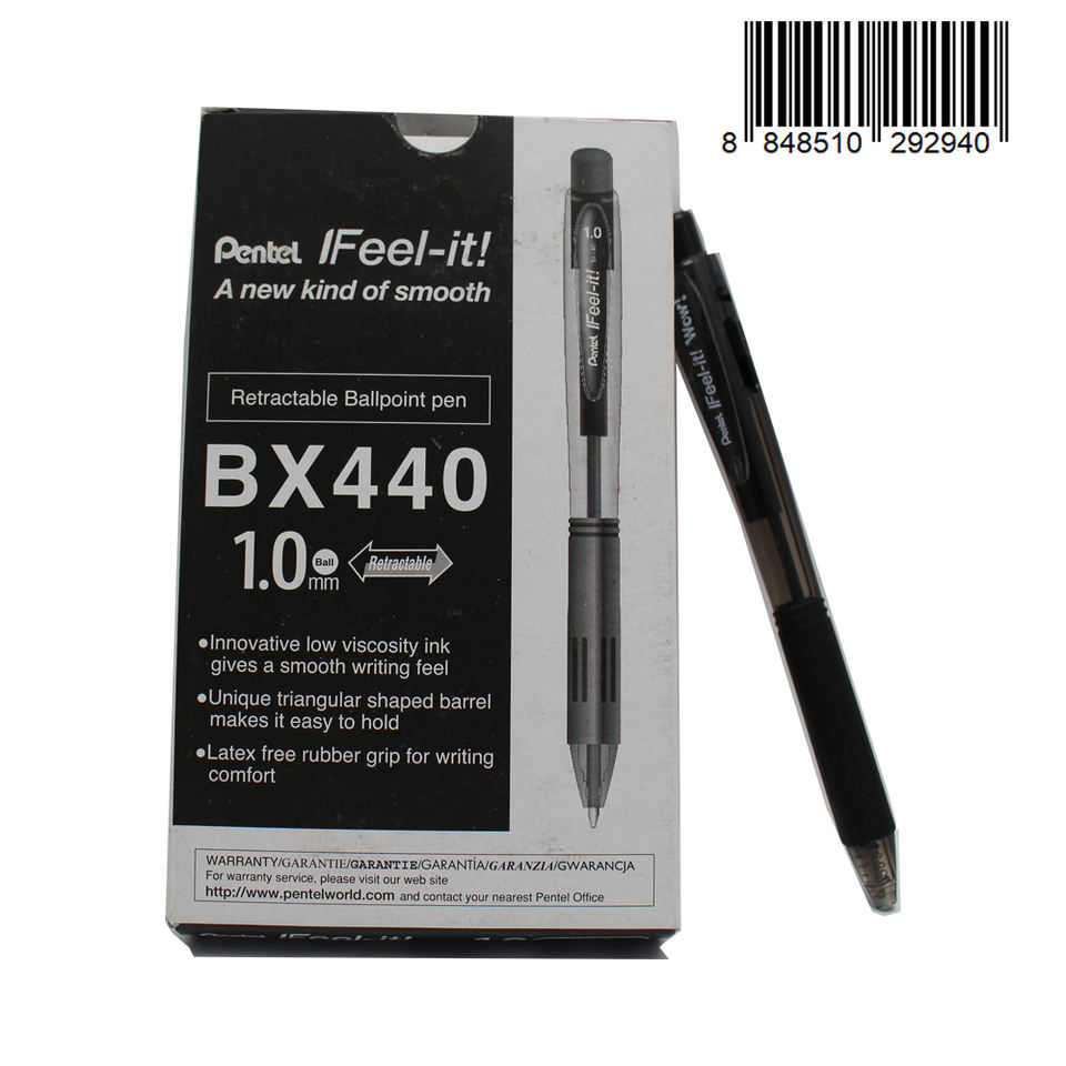 เพนเทล BK440A ว้าว! ปากกาลูกลื่นสีดำ12ด้ามปากกาเขียนทนทาน6ชิ้นปากกาลูกลื่นเพนเทลสีดำ