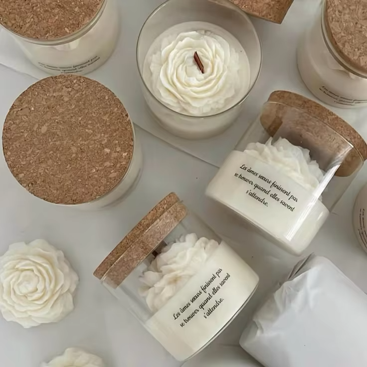 เทียนหอมกลิ่นดอกโบตั๋นจากขี้ผึ้งถั่วเหลืองในขวดแก้ว ออร์แกนิค ของขวัญวันพ่อ วันขอบคุณพระเจ้า ของชำร่วยงานแต่งงาน LANJO ทำมือ กลิ่นหอมตามสั่ง