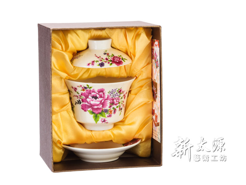 ถ้วยชา Peony Gongfu (สีเบจ) ถ้วยชาแบบโอนน้ำได้ตามต้องการ