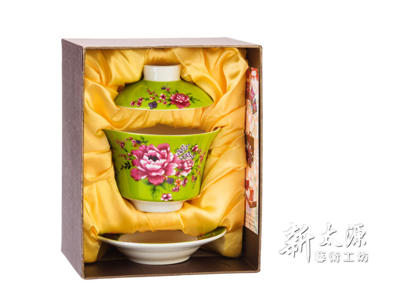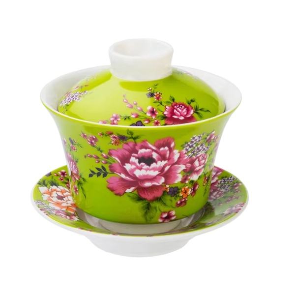 ถ้วยชาชงฟู่ลายดอกโบตั๋น (สีเขียว)