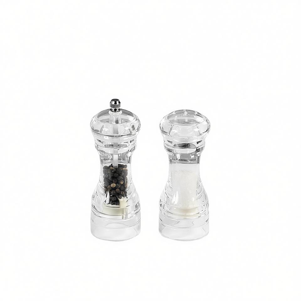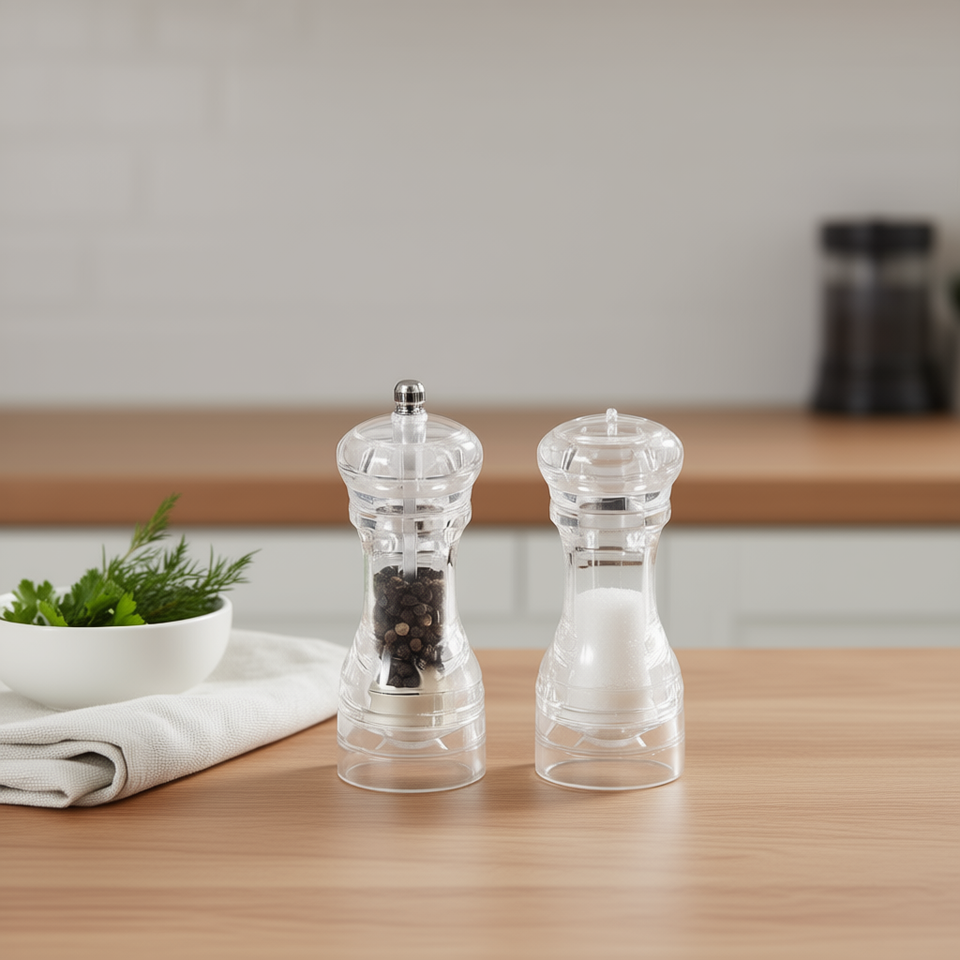 ชุดเครื่องบดพริกไทยและเกลือ 2 ชิ้น อะคริลิคใส ปรับระดับได้ สำหรับปรุงรสในครัว