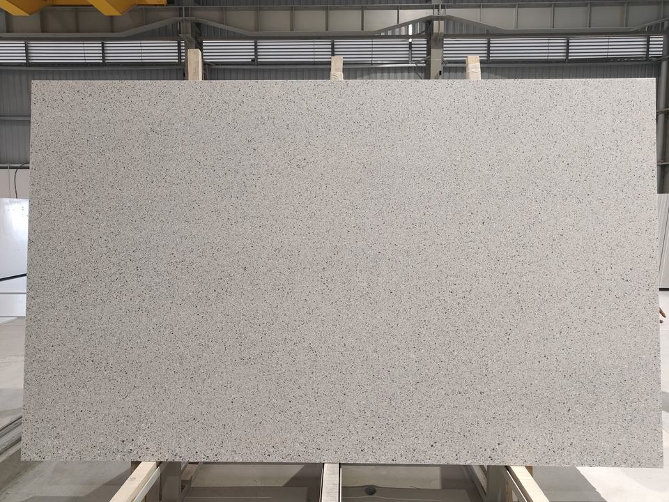 แผ่นควอตซ์วิศวกรรม Pepper Corn แบบเต็มแผ่น พร้อมพื้นผิวลายจุดสีเข้มที่หรูหราและเสน่ห์ทันสมัย