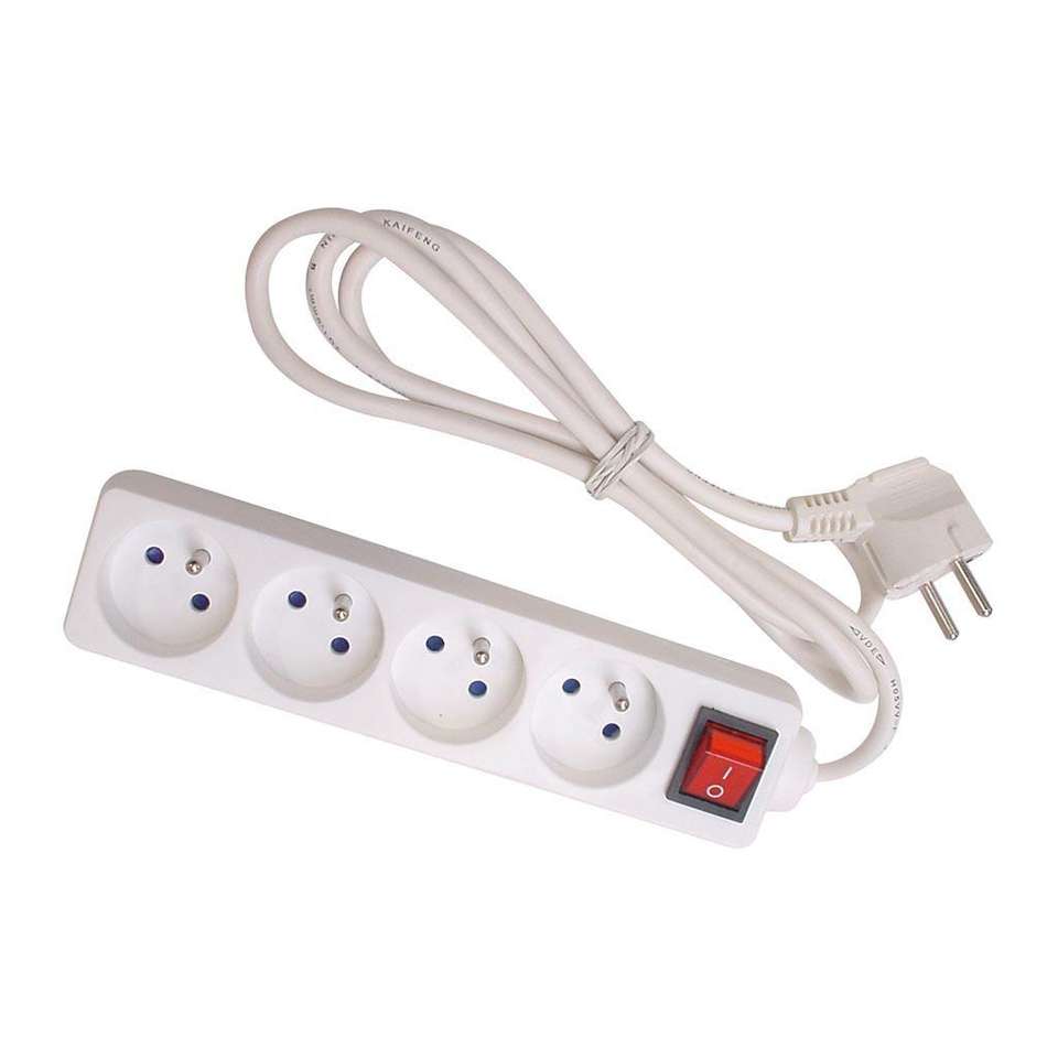 Perel ซ็อกเก็ต4ทาง-เต้าเสียบพร้อมสวิตช์-สายเคเบิล3ม.-สีขาว-ซ็อกเก็ตฝรั่งเศส