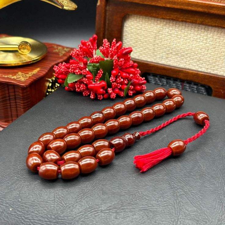 ลูกประคำอำพันลายเสือขาวทรงกลมแบบตัดแต่งอย่างประณีตสำหรับชาวมุสลิม