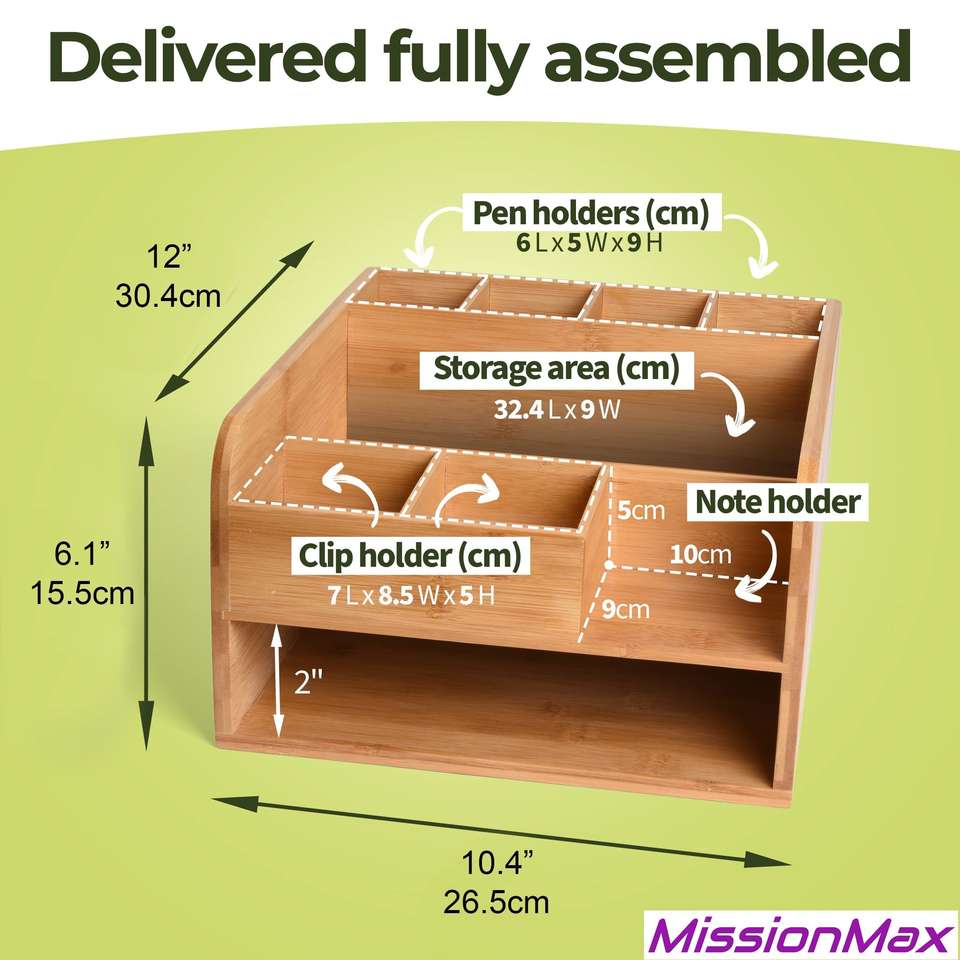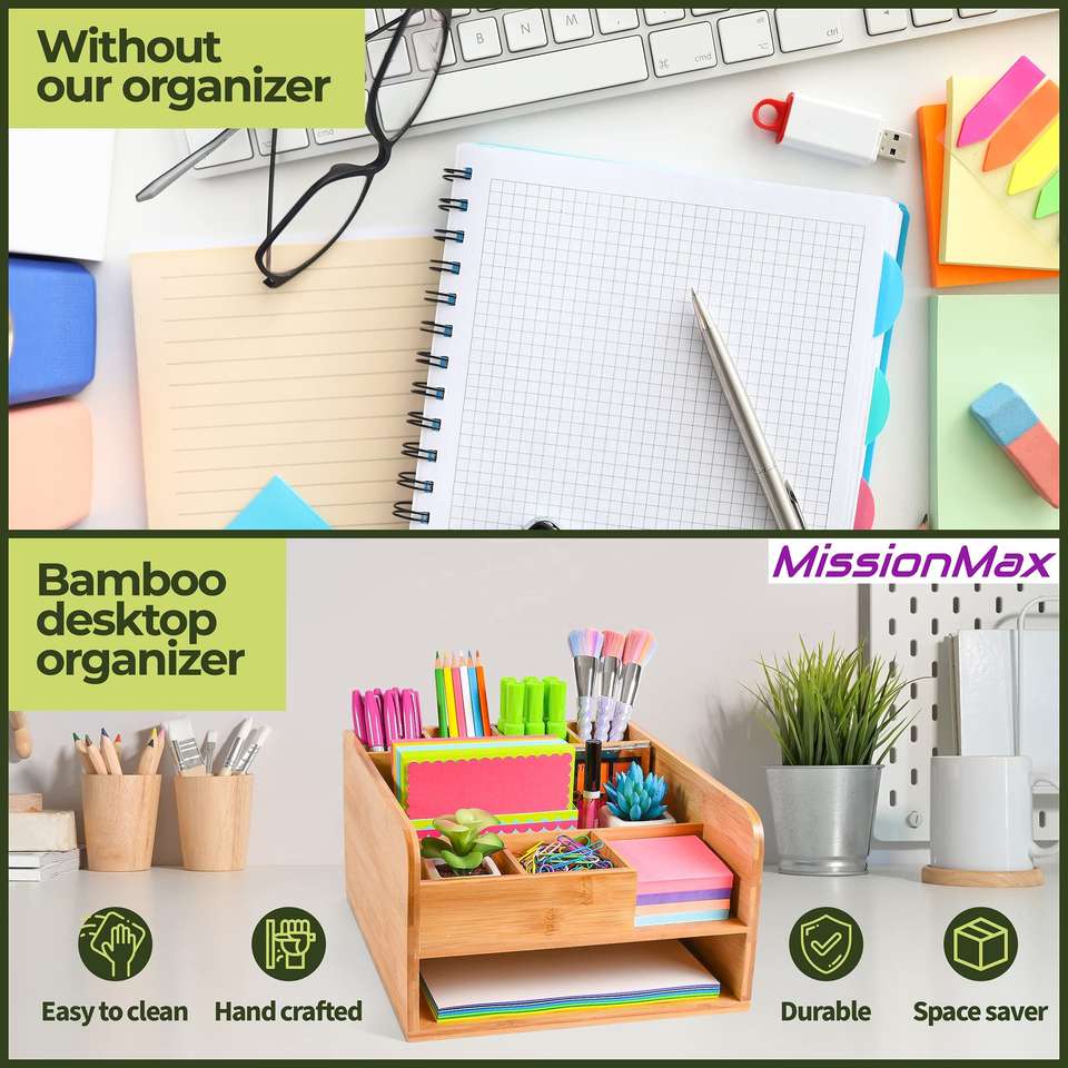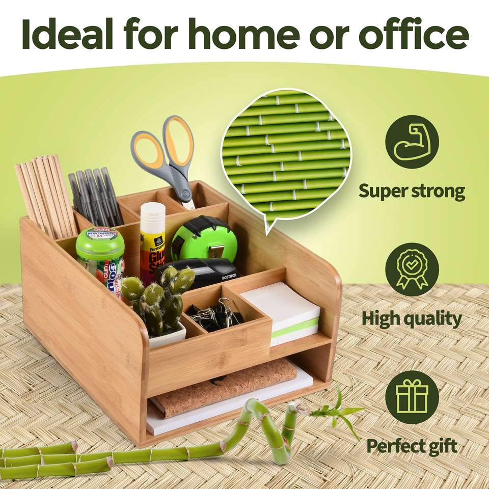 ที่จัดระเบียบโต๊ะทำงานไม้ไผ่ Perfect Decor พร้อมที่เก็บเอกสารสำหรับจัดเก็บอุปกรณ์สำนักงาน มีช่องเก็บของหลายช่อง