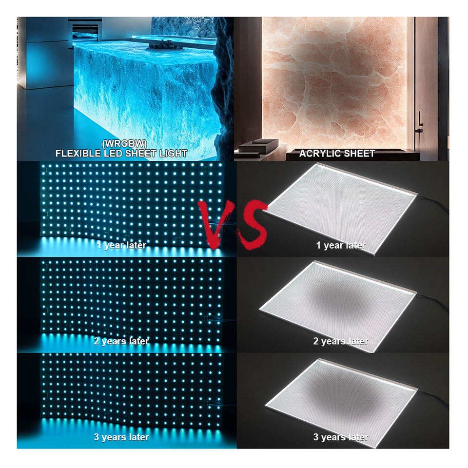 แผ่นไฟ LED แบบยืดหยุ่นได้สมบูรณ์แบบ SMD5050 WRGBW 2400K/RGB/6500K ปรับความสว่างได้ พร้อมแผ่นกระจายแสงด้านบน สำหรับไฟแบ็คไลท์