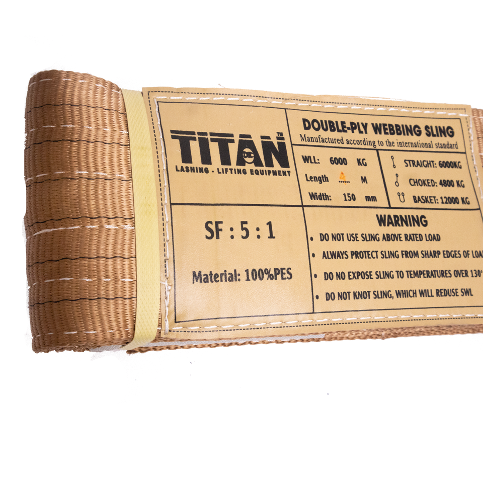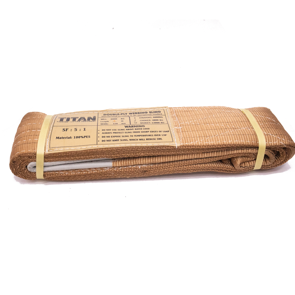 เหมาะสำหรับงานยกน้ำหนักที่แข็งแรงสลิงสายรัดโพลีเอสเตอร์สีน้ำตาลที่มีความจุ6000กก. ให้ความปลอดภัยเต็มที่