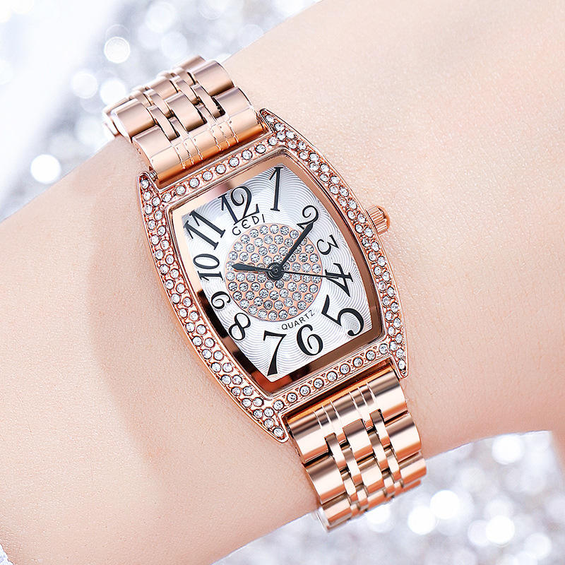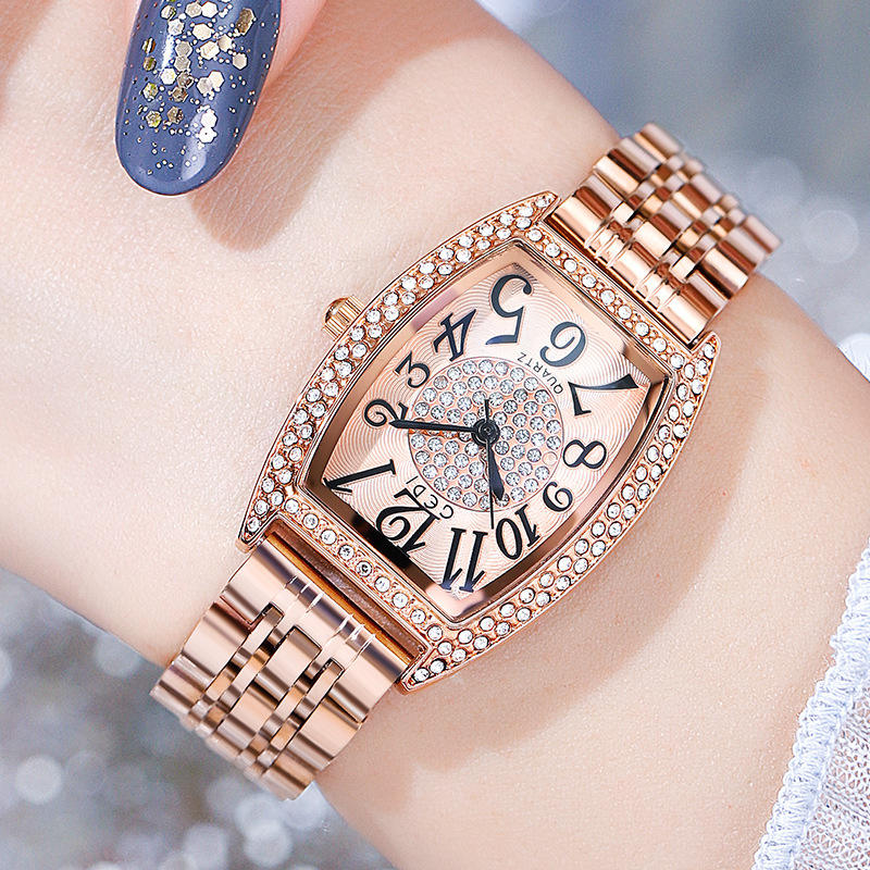 นาฬิกาควอตซ์สายเหล็กทรงกระบอกหน้าปัดลายดวงดาว ของขวัญวันหยุดที่สมบูรณ์แบบสำหรับผู้หญิง