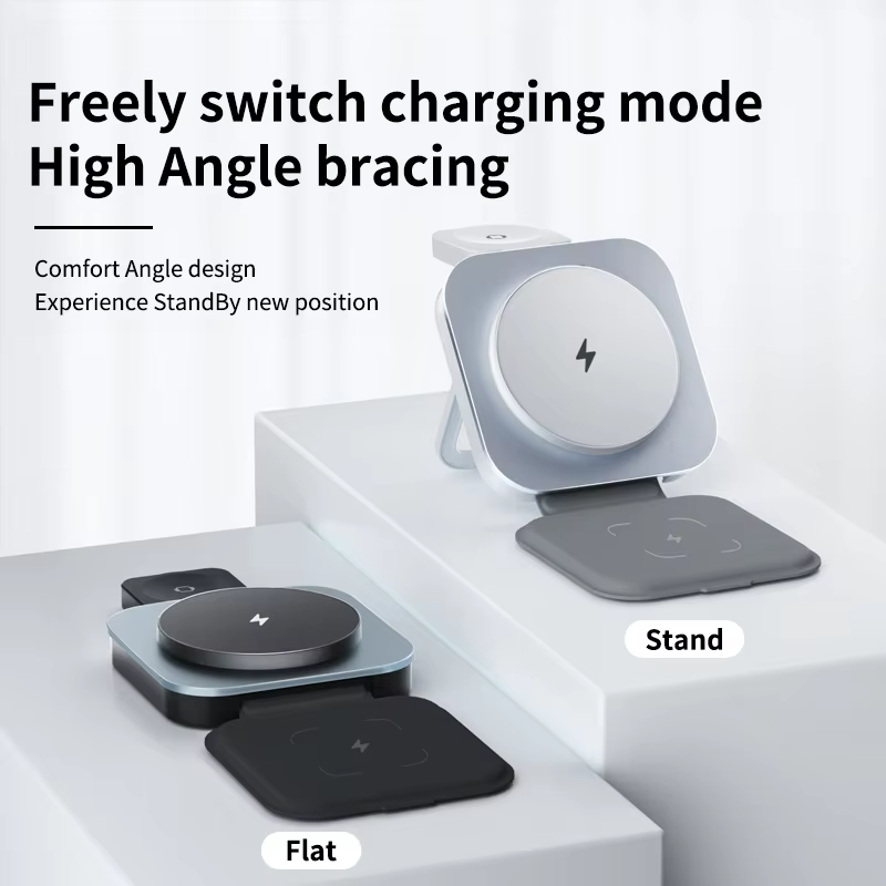 เครื่องชาร์จไร้สายแม่เหล็กแบบ3 in 1กระจายความร้อนระดับชิปคู่5W/10W กำลังขับ5W