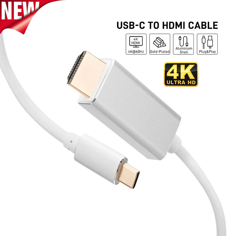 สาย USB Type C เป็น HDMI,โทรศัพท์คุณภาพสมบูรณ์แบบสำหรับทีวีสาย HDMI สายเคเบิล4K 60Hz Type-C เป็นสาย HDMI