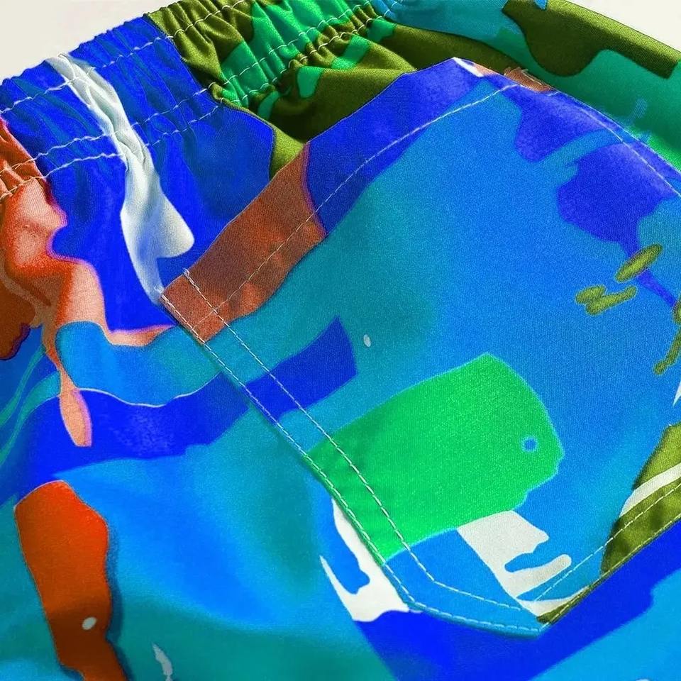 กางเกงขาสั้นผู้ชายทรงปกติ คุณภาพเยี่ยม เป็นมิตรกับสิ่งแวดล้อม ลายพิมพ์แบบซับลิเมชั่น สีสันหลากหลาย สั่งทำได้ ระบายอากาศได้ดี ผลิตจากโพลีเอสเตอร์ 100%