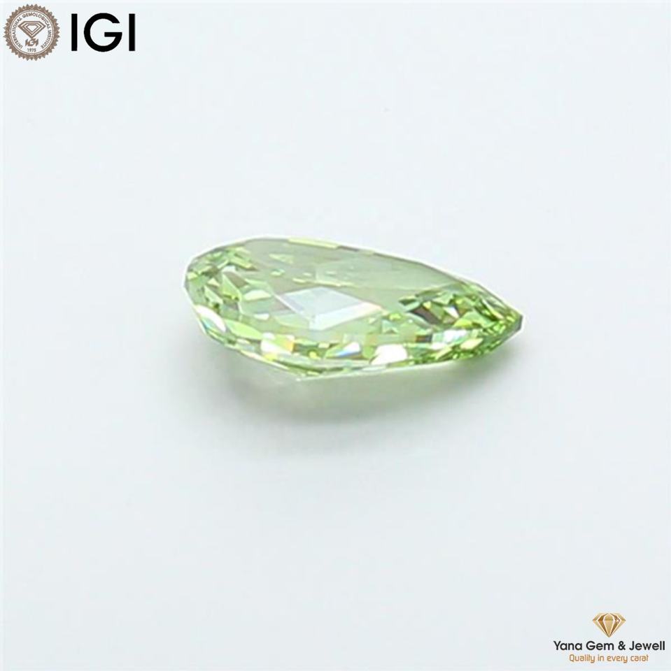 เพชรเพียวร์ทรงลูกแพร์ 3.00 กะรัต ผลิตในห้องปฏิบัติการด้วยวิธี CVD พร้อมใบรับรอง IGI สีเขียวสดใสแฟนซี ความสะอาดระดับ VS2